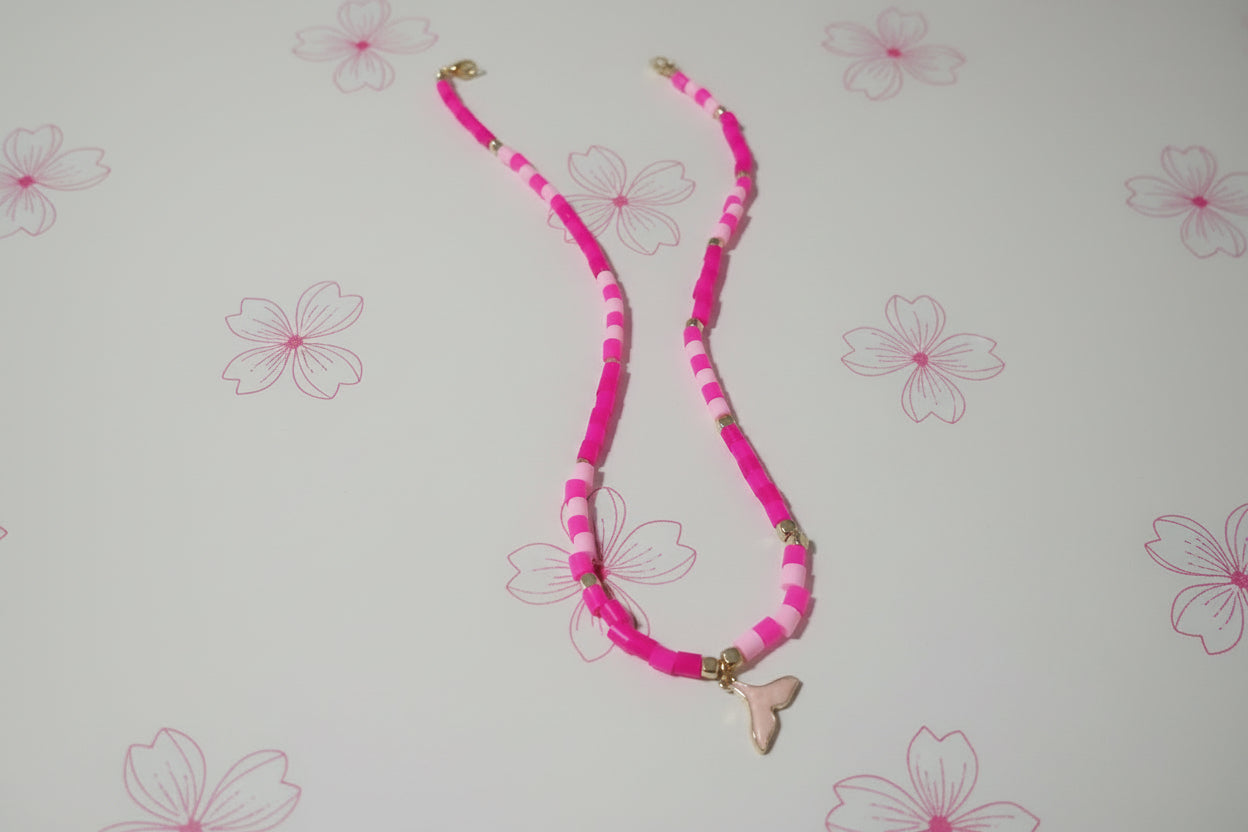 [handmade clay bead choker, heart pendant necklace, colorful tube bead jewelry, gold heart choker, blue gradient necklace, pink and white beaded jewelry, artisan summer accessories, unique gift for her, vlyn style jewelry]